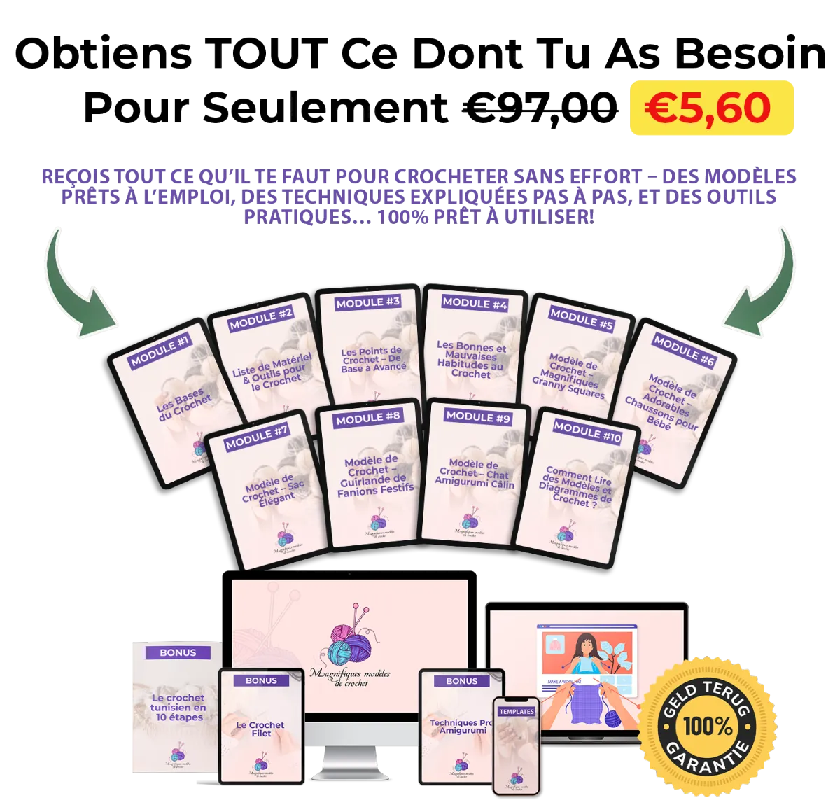 Et pendant une durée limitée, tu peux recevoir TOUT ce que tu vois sur cette page pour le prix exceptionnel de seulement €97,00 €5,60.
